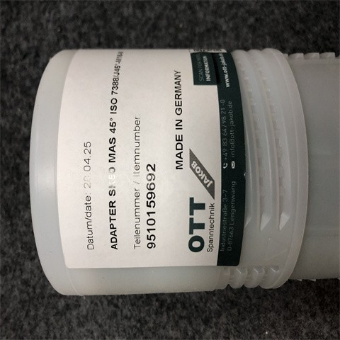 德国 OTT - JAKOB 公司作为转接头 9510159692 的缔造者,一直秉持着对高精度制造的追求。这款转接头主要应用于机械加工、航空航天以及自动化生产线等对连接精度和稳定性要求极高的行业。在机械加工领域,它能够实现不同规格刀具与主轴之间的精准转接,确保刀具在高速切削过程中保持稳定的同轴度,从而提高加工精度,保障产品质量。在航空航天行业,零部件制造和装配对连接的可靠性要求近乎苛刻,9510159692 转接头凭借其卓越的机械性能和精密制造工艺,为飞机发动机、机翼等关键部件的连接提供稳固保障。在自动化生产线中,该转接头可实现不同设备间的高效连接,确保生产流程的连贯性和稳定性。